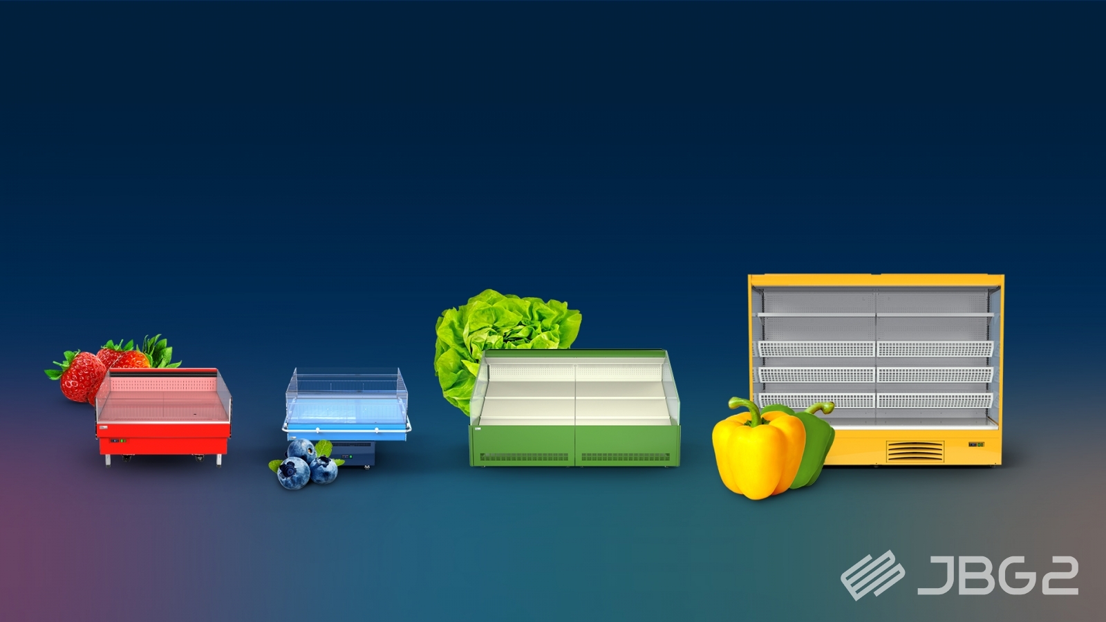 The JBG-2 offer contains a number of refrigerating appliances for storing fruit and vegetables. Depending on the store’s design these may be tall or horizontal multidecks or islands. Most of these appliances can be equipped with additional lighting or a sprinkler system.